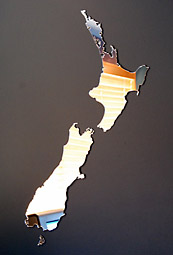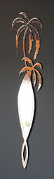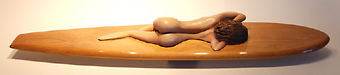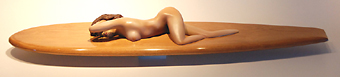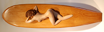 and an have mounted to a hand shaped native Rimu surfboard, finished in
